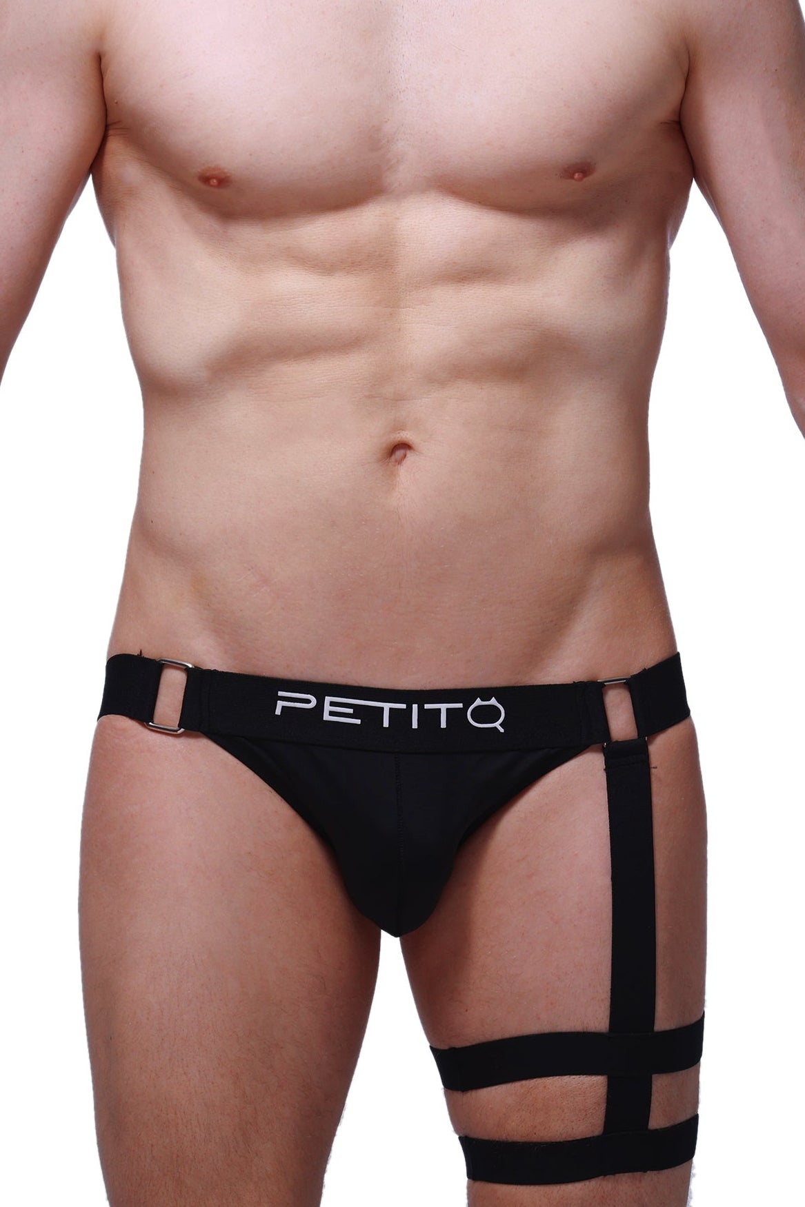 Nice black jockstrap with elastics on only one thigh to challenge your inner Lara Croft. Black nylon pouch