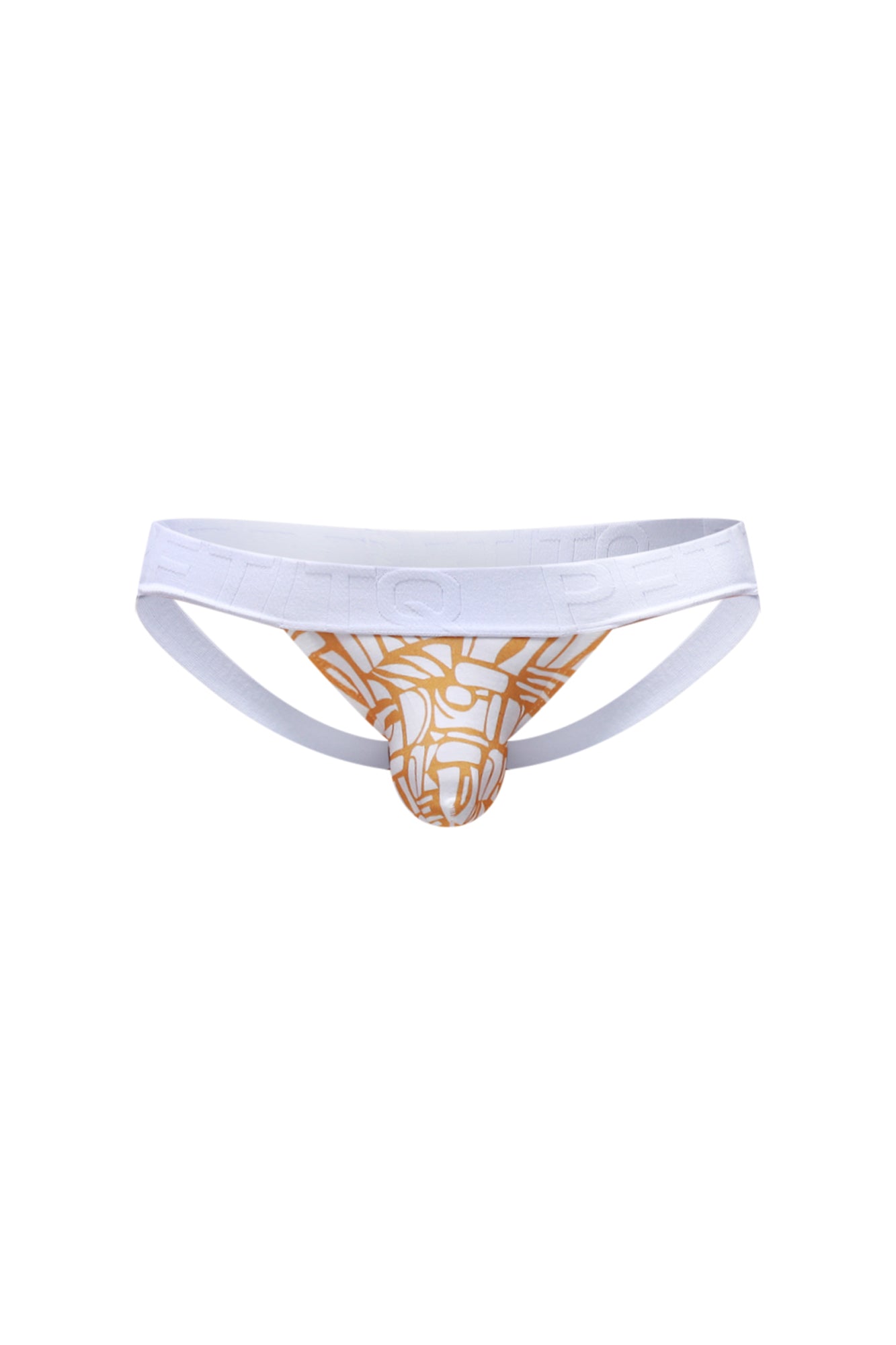 The Jockstrap Chill Carlot Alloy is a low-rise men’s jockstrap made from lightweight modal fabric (95% modal, 5% spandex) for a smooth, barely-there feel. It features a vibrant orange geometric pattern paired with a clean white waistband for contrast and support.
