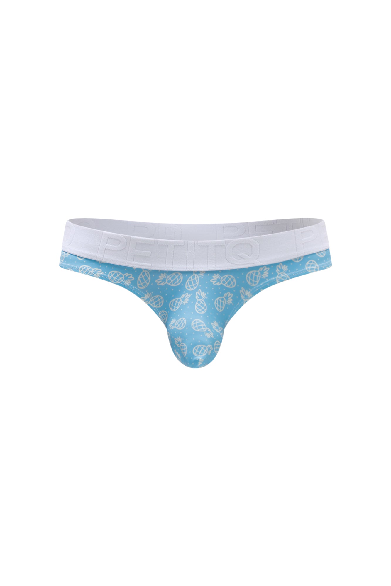 The Thong Chill Ananas is a playful and comfortable men’s thong made from soft and stretchy nylon-spandex fabric (82% nylon / 18% spandex). It features a bold blue base with a cute pineapple pattern, paired with a clean white waistband for a fresh, vibrant look.